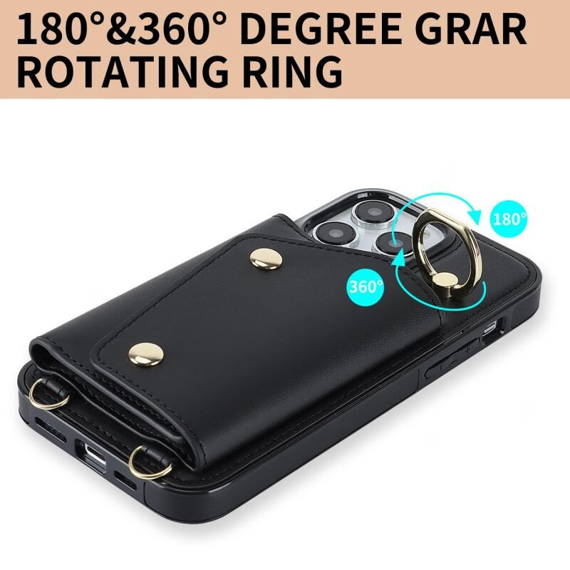 For iPhone 13 Pro Zipper Card Bag Phone Case with Dual Lanyard(Black)