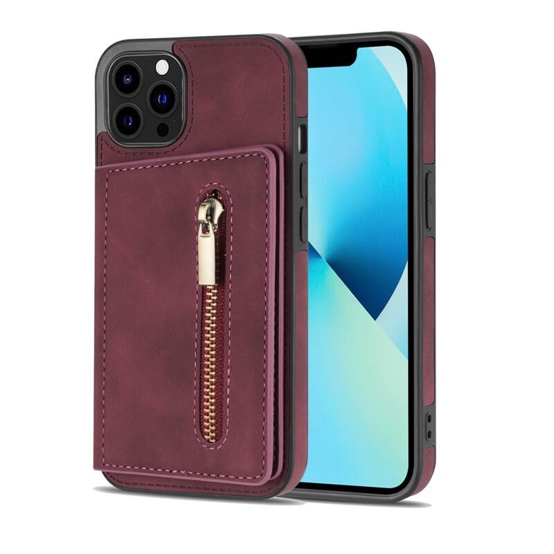 Θήκη κινητού τηλεφώνου με φερμουάρ και θήκη καρτών για iPhone 13 Pro (Μαύρο)