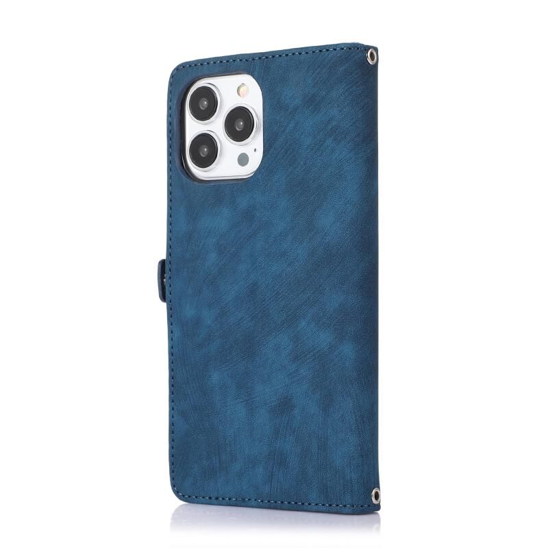 For iPhone 13 Pro Zipper Card Slot Buckle Wallet Leather Phone Case(Blue)