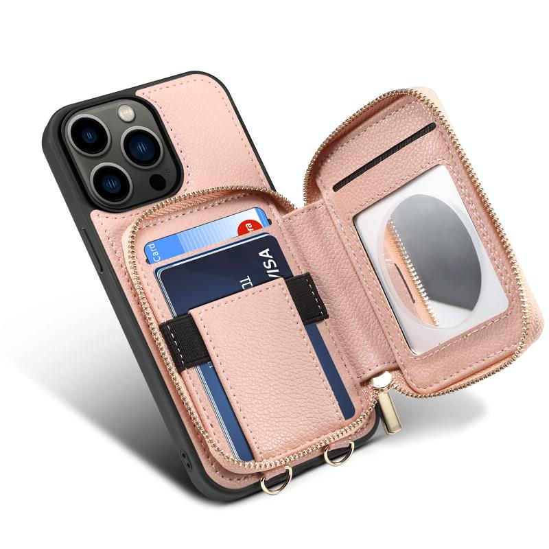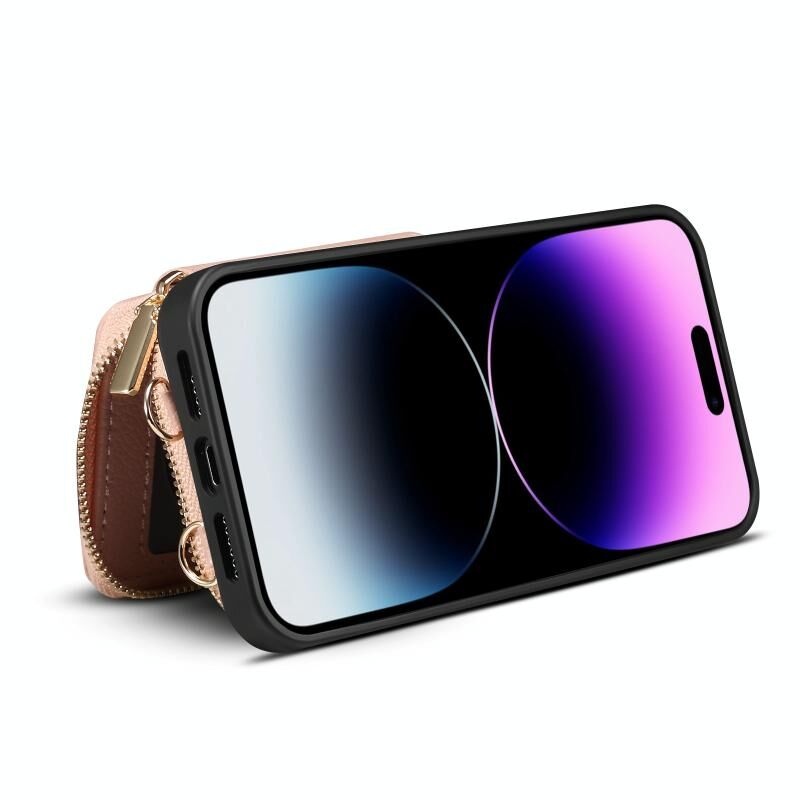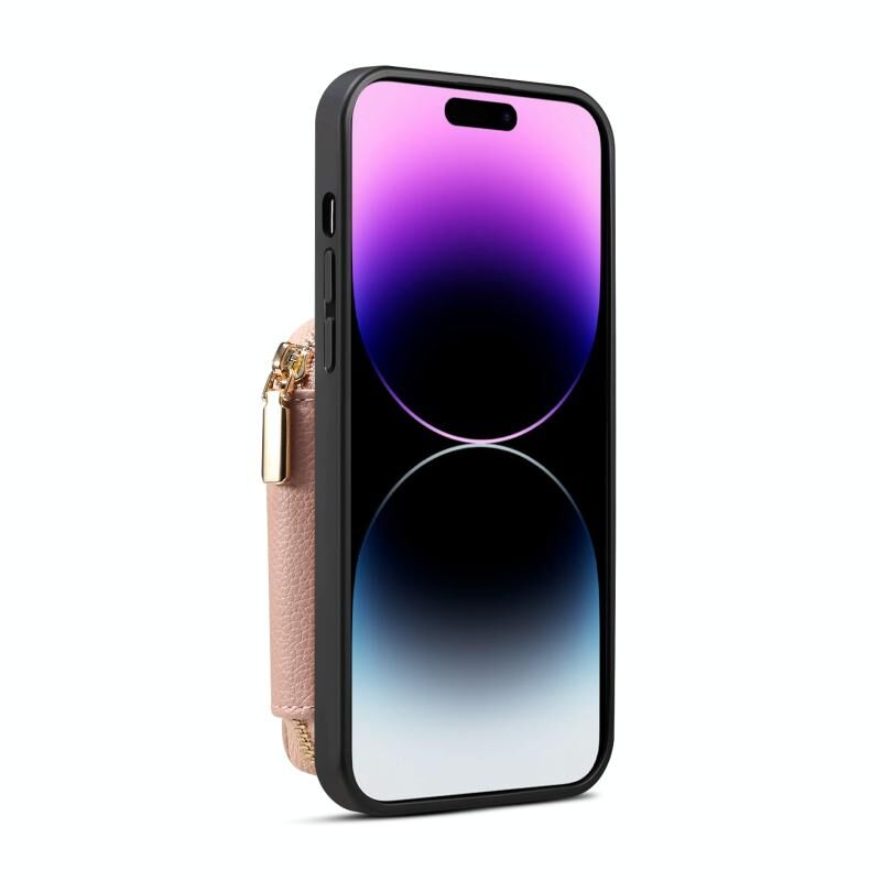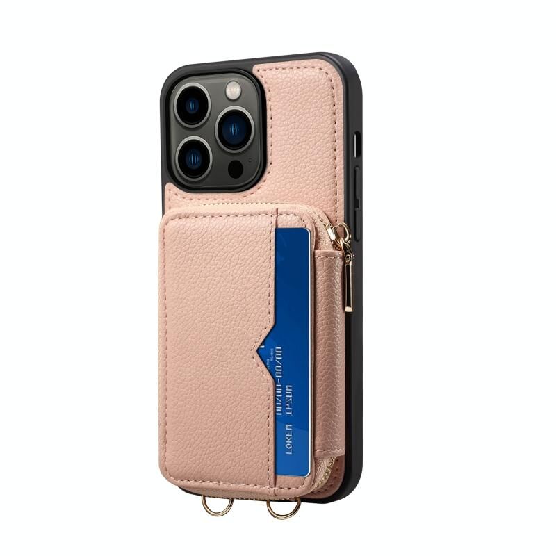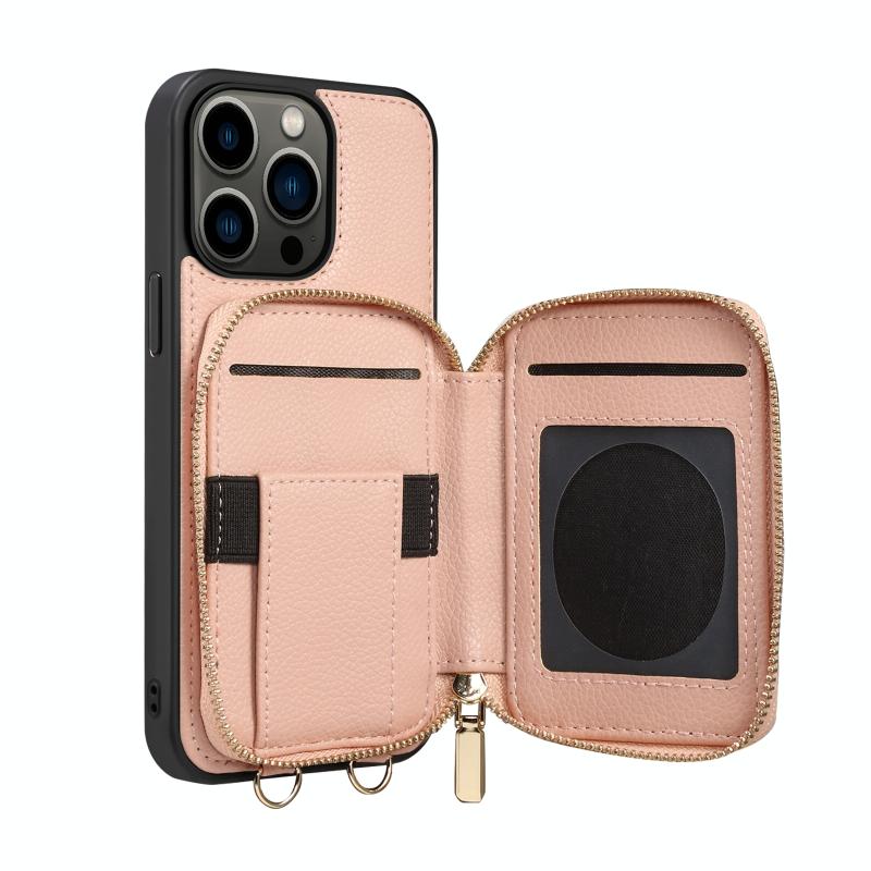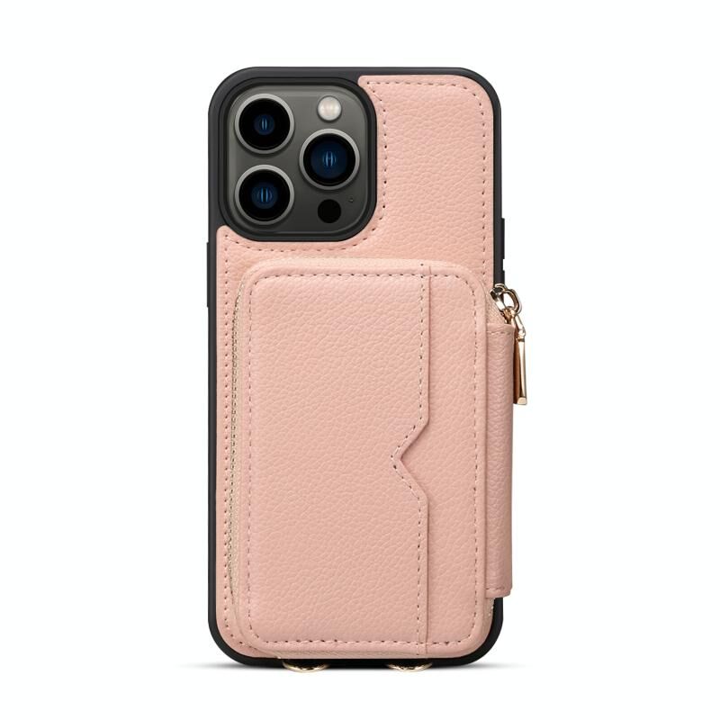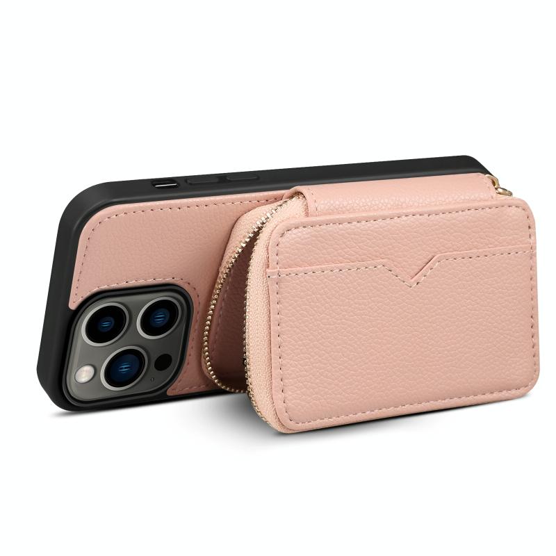 For iPhone 13 Pro Zipper Card Slot Phone Case(Pink)