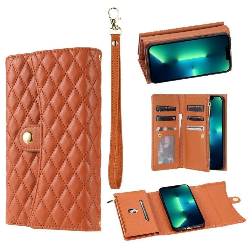 Θήκη τηλεφώνου από δέρμα σε σχήμα ρόμβου με φερμουάρ και πολλαπλές θήκες καρτών για iPhone 13 Pro (Μαύρο)