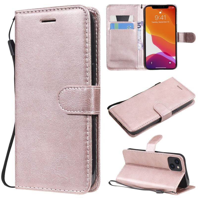 Θήκη δέρματος οριζόντιας αναδίπλωσης για iPhone 13 σε απλό χρώμα με βάση, θήκες καρτών, πορτοφόλι και κορδόνι (Καφέ)