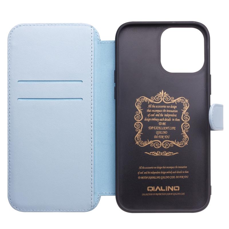 For iPhone 13 QIALINO Magnetic Buckle Phone Leather Case with Card Slot(Sierra Blue) (QIALINO)