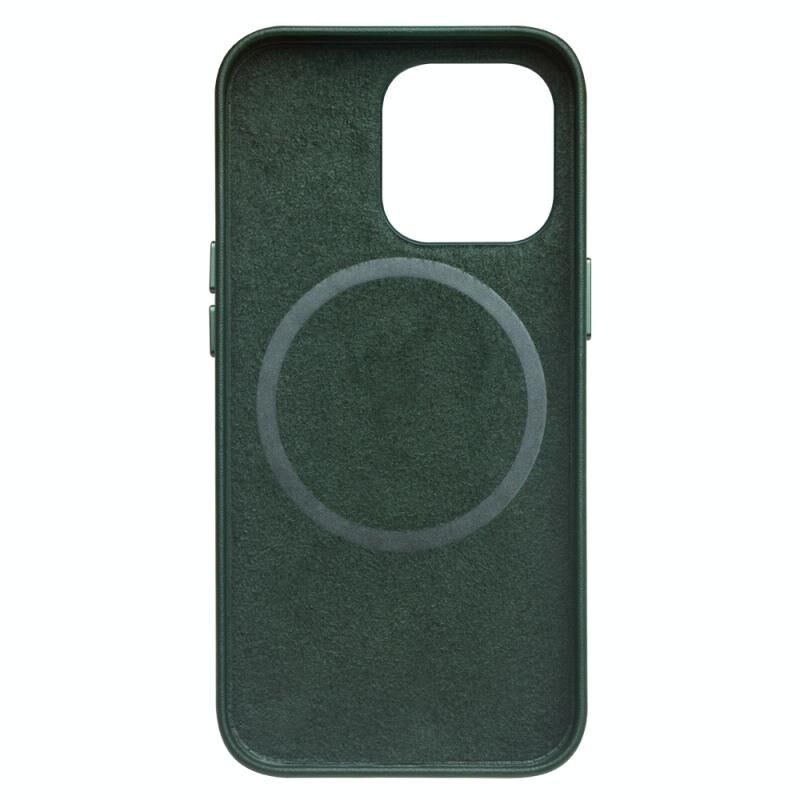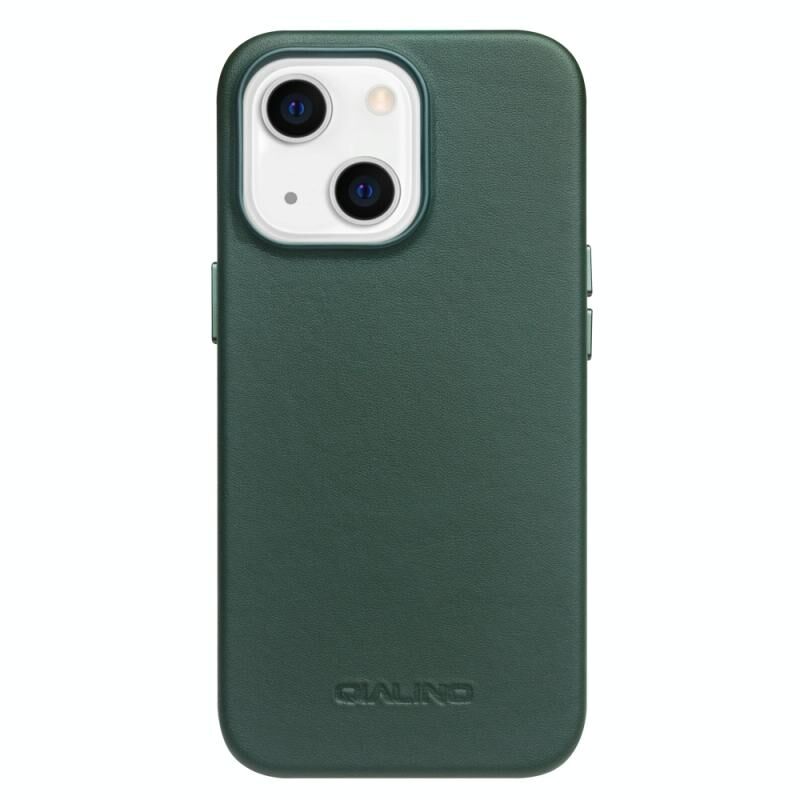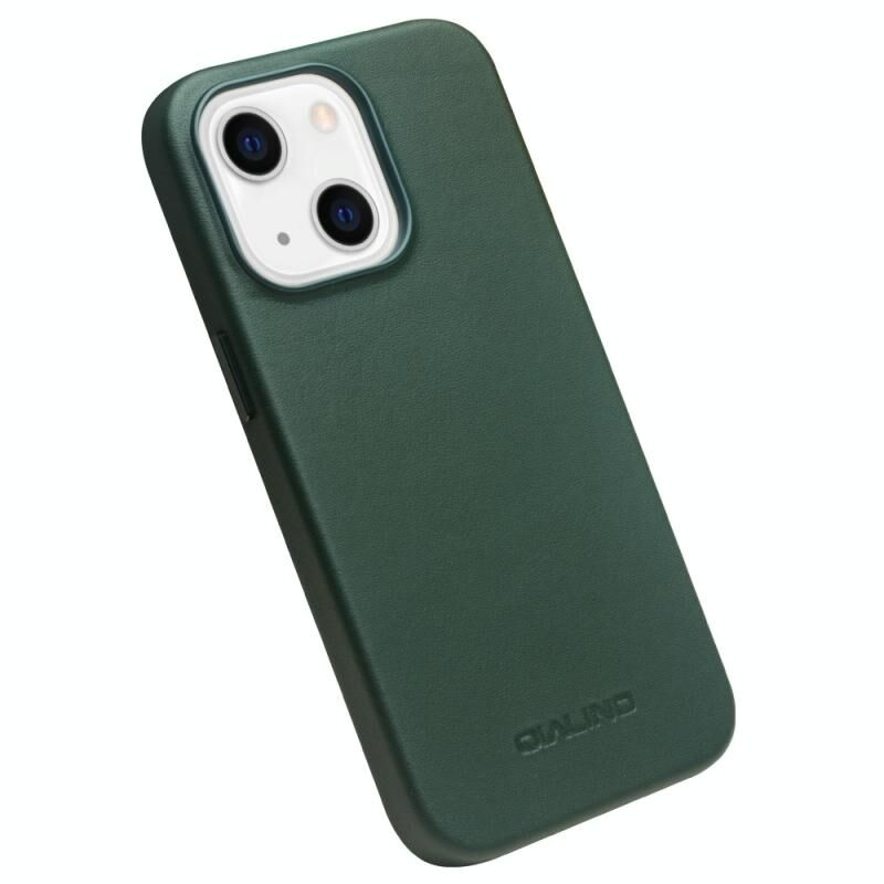For iPhone 13 QIALINO Nappa Cowhide MagSafe Magnetic Protective Case(Dark Green) (QIALINO)
