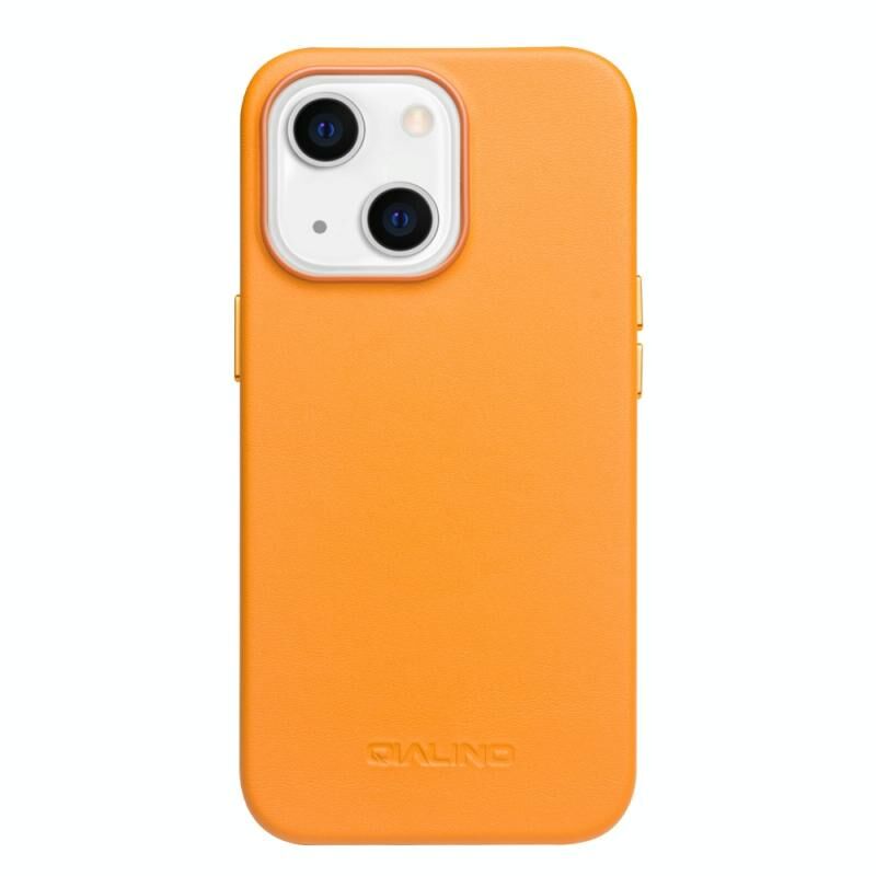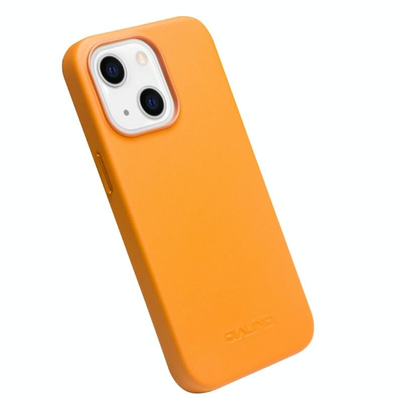 For iPhone 13 QIALINO Nappa Cowhide MagSafe Magnetic Protective Case(Orange) (QIALINO)