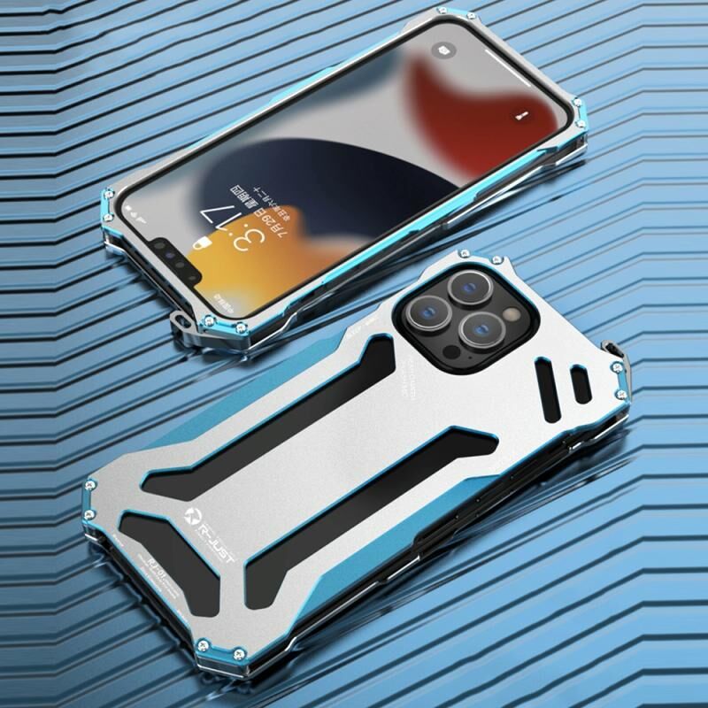 For iPhone 13 R-JUST Shockproof Armor Metal Protective Case(Blue) (R-JUST)