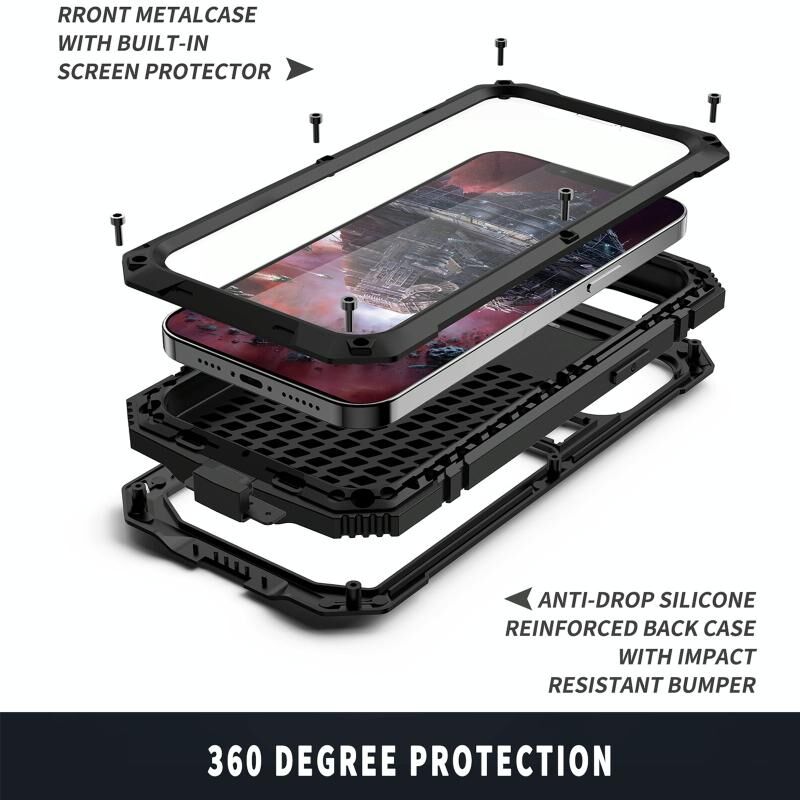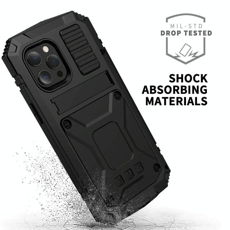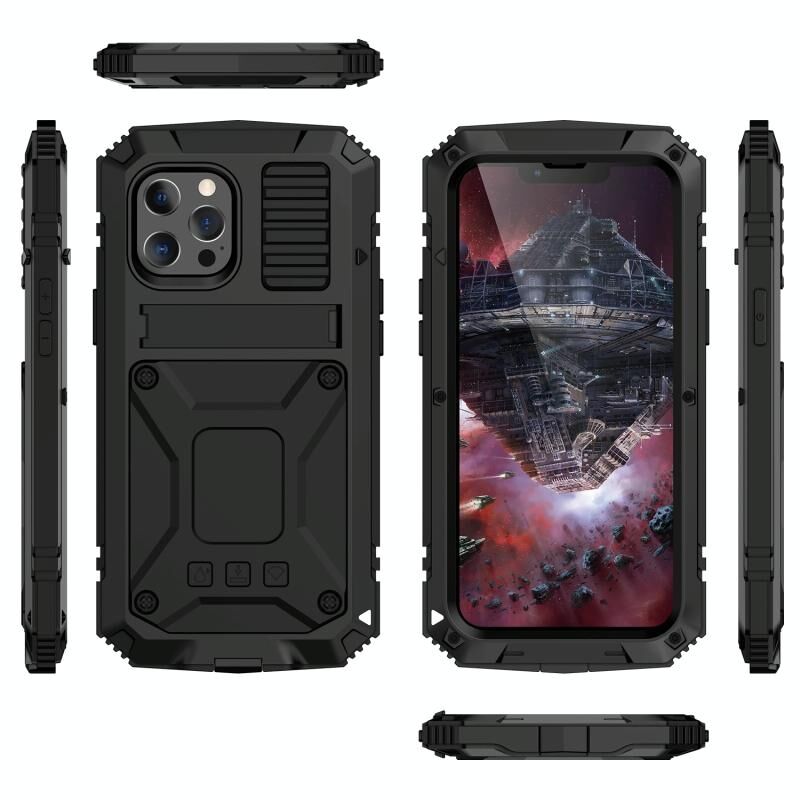 For iPhone 13 R-JUST Shockproof Waterproof Dust-proof Metal + Silicone Protective Case with Holder(Black) (R-JUST)