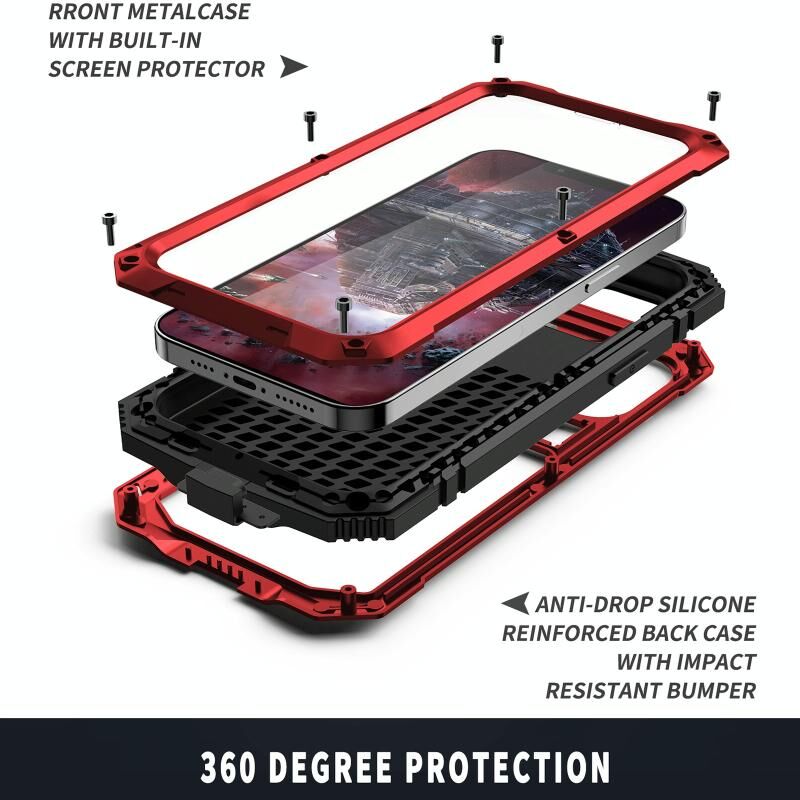 For iPhone 13 R-JUST Shockproof Waterproof Dust-proof Metal + Silicone Protective Case with Holder(Red) (R-JUST)