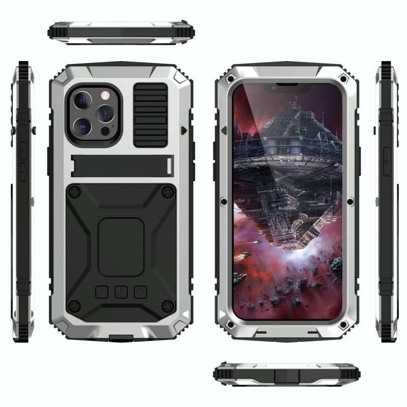For iPhone 13 R-JUST Shockproof Waterproof Dust-proof Metal + Silicone Protective Case with Holder(Silver) (R-JUST)