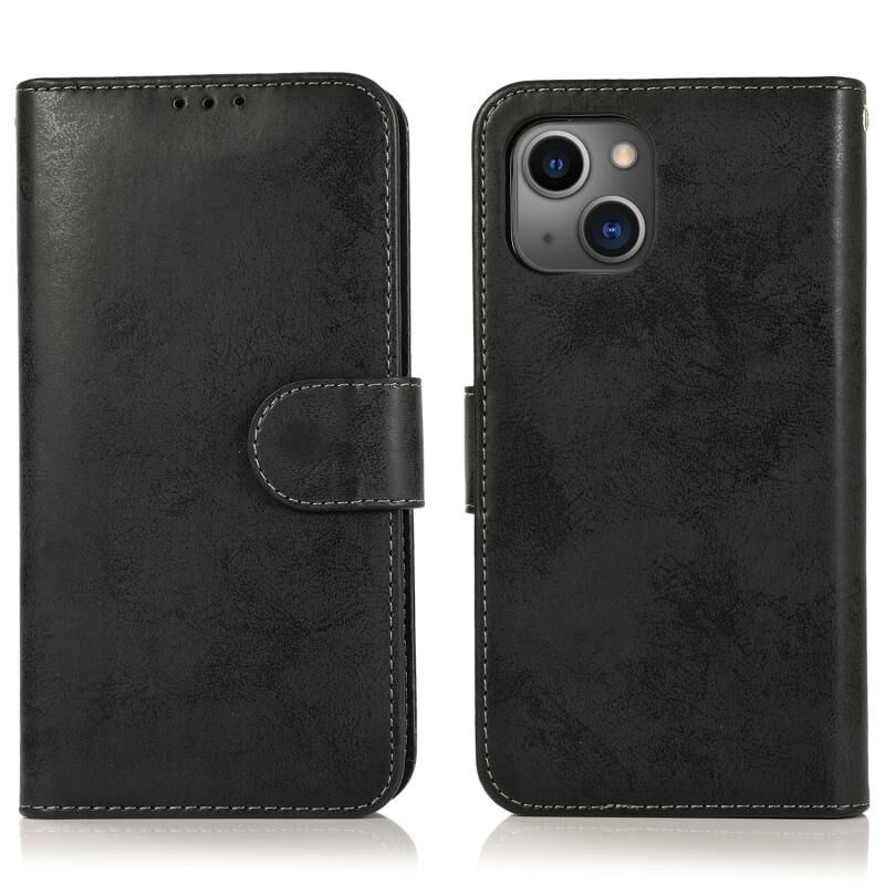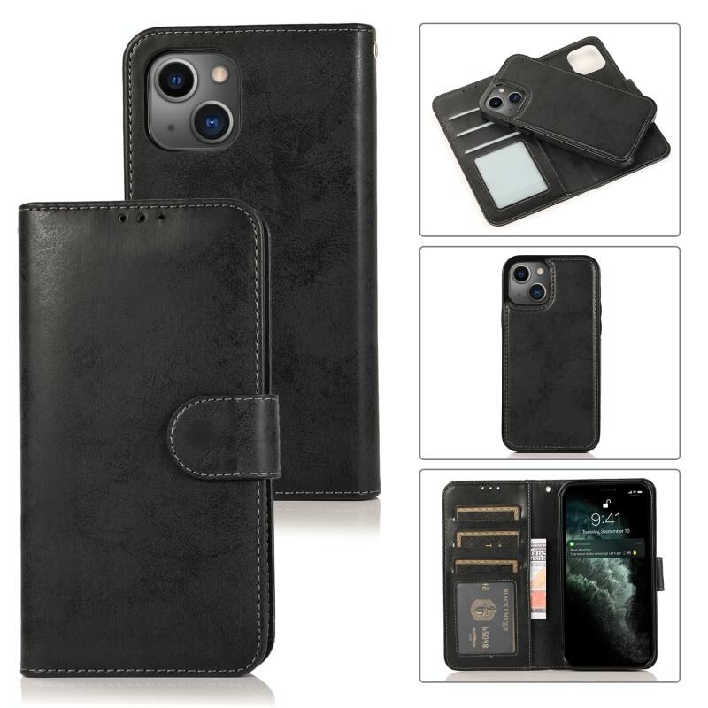 For iPhone 13 Retro 2 in 1 Detachable Horizontal Flip Leather Case with Card Slots & Wallet(Black)