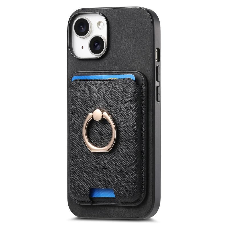 For iPhone 13 Retro Cross Leather Card Bag MagSafe Phone Case(Black)