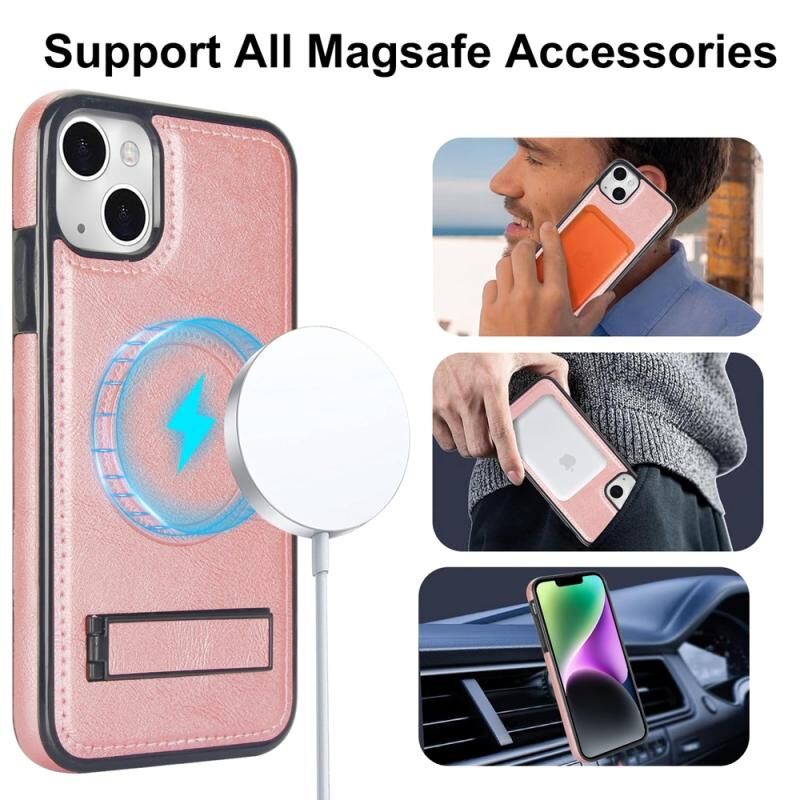 For iPhone 13 Retro Leather Invisible Stand MagSafe Phone Case(Rose Gold)