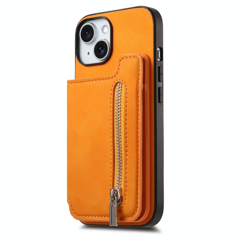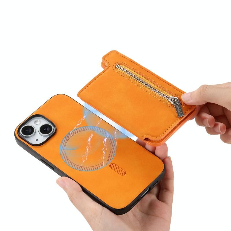 Θήκη κινητού για iPhone 13 με ρετρό πορτοφόλι MagSafe και φερμουάρ σε κίτρινο χρώμα.