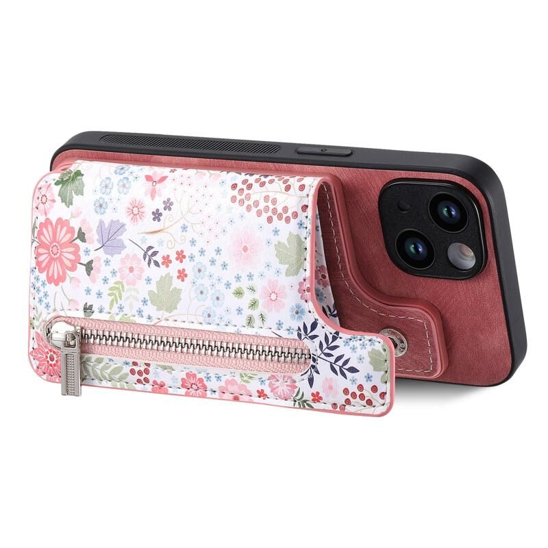 Θήκη κινητού για iPhone 13 με σχέδιο retro, φερμουάρ και θήκη πορτοφολιού (Ροζ)