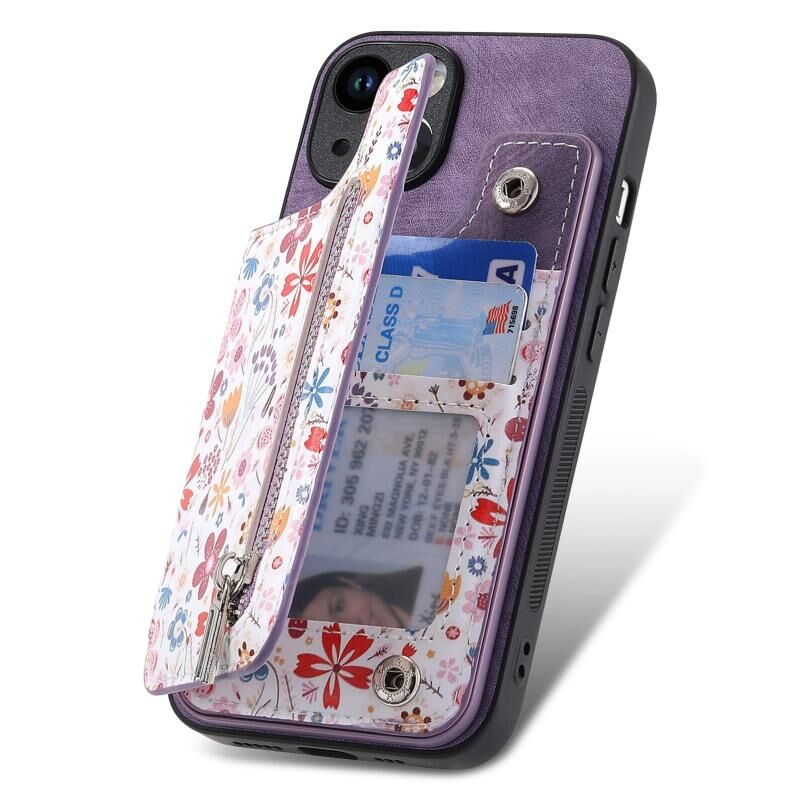 Θήκη τηλεφώνου για iPhone 13 με ζωγραφισμένο ρετρό σχέδιο, φερμουάρ και θήκη πορτοφολιού (Μωβ)