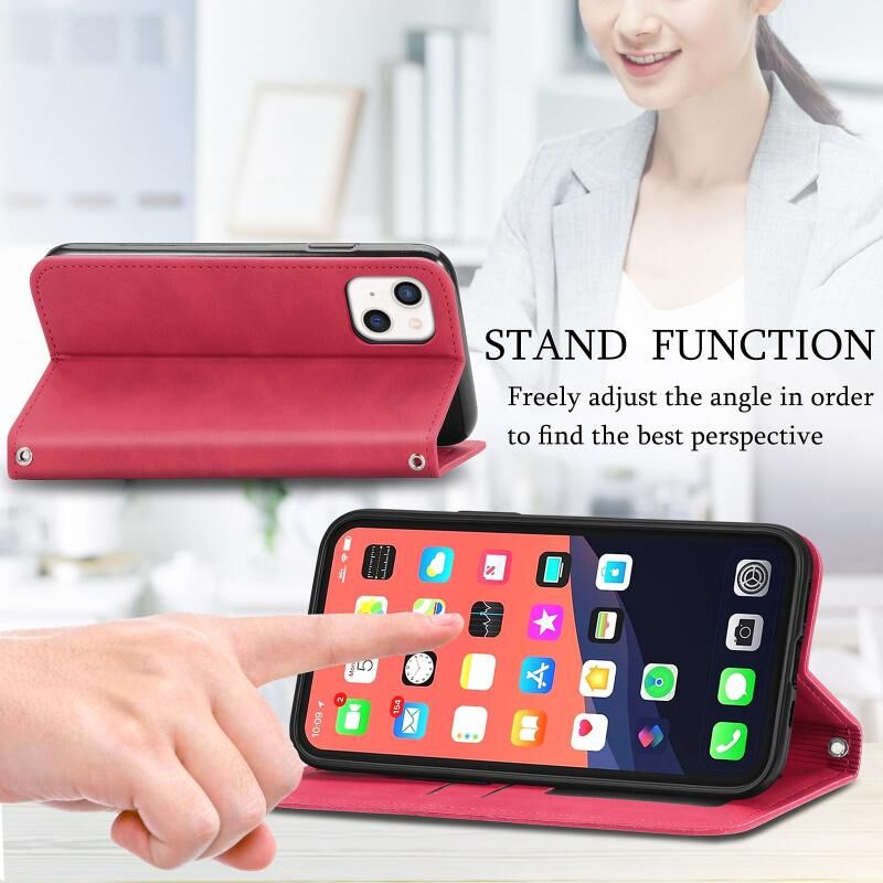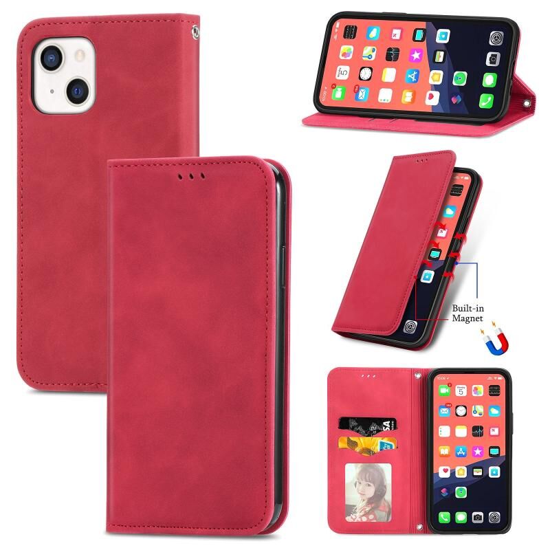 Θήκη για iPhone 13 με υφή retro, επαγγελματική, μαγνητική, οριζόντια, δερμάτινη με βάση, θήκες για κάρτες, πορτοφόλι & κορνίζα φωτογραφιών (Καφέ)