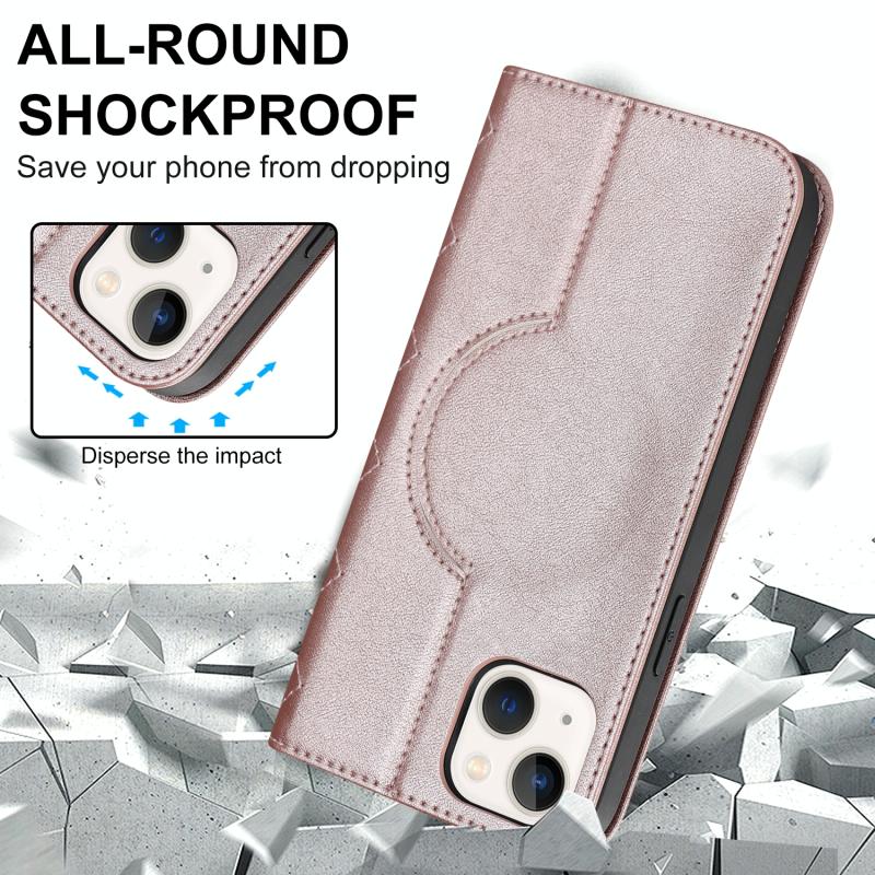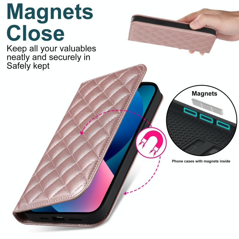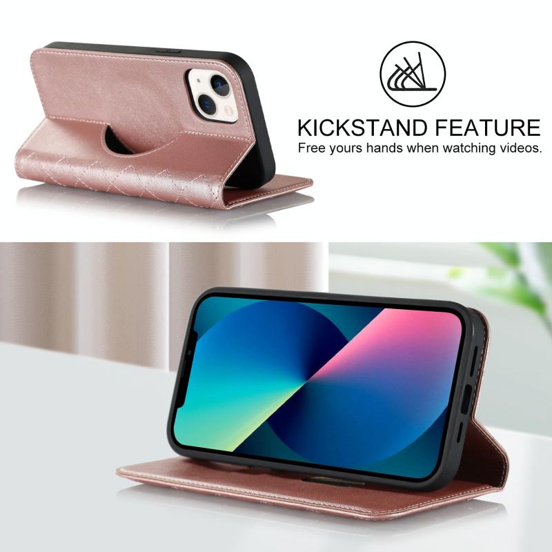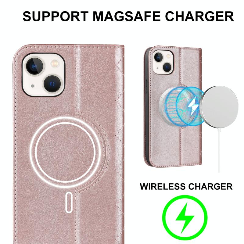 For iPhone 13 Rhombic MagSafe RFID Anti-Theft Wallet Leather Phone Case(Rose Gold)