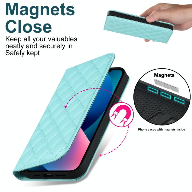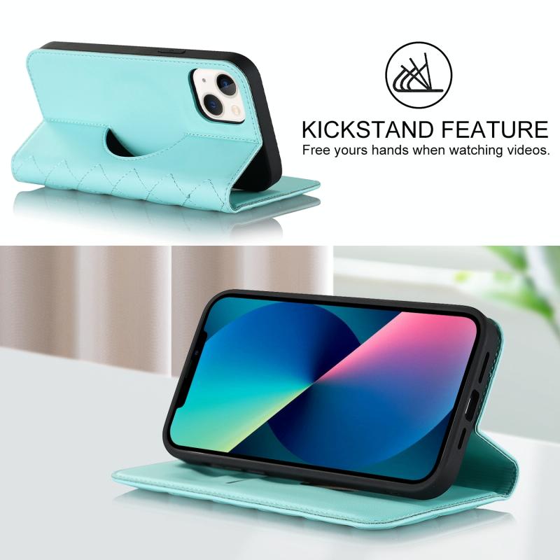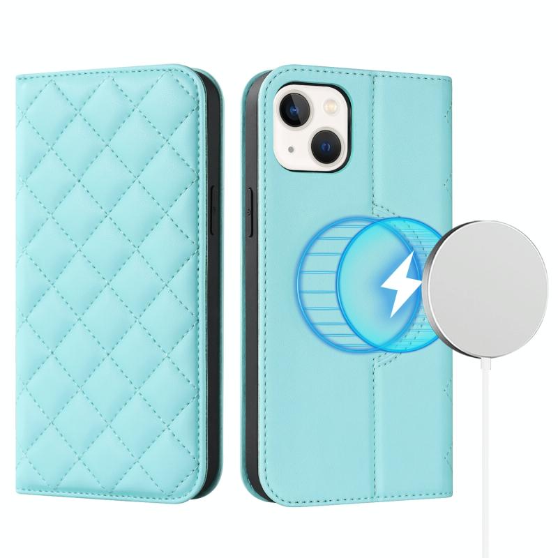 For iPhone 13 Rhombic MagSafe RFID Anti-Theft Wallet Leather Phone Case(Sky Blue)