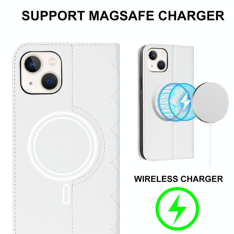 For iPhone 13 Rhombic MagSafe RFID Anti-Theft Wallet Leather Phone Case(White)