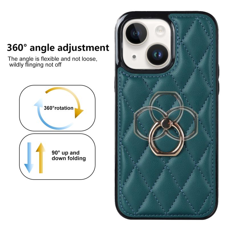 For iPhone 13 Rhombic PU Leather Phone Case with Ring Holder(Green)