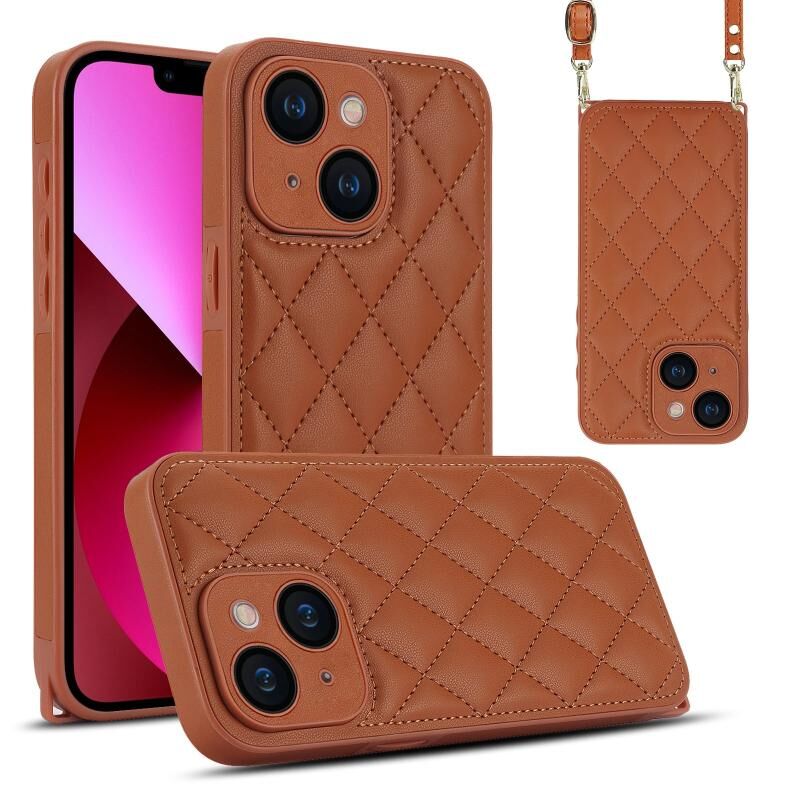 Θήκη τηλεφώνου για iPhone 13 με υφή ρόμβου και διπλό κορδόνι (Λευκό)