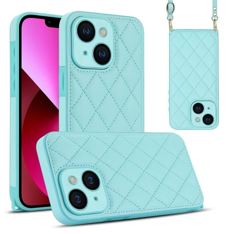 For iPhone 13 Rhombic Texture Phone Case with Dual Lanyard(Green)