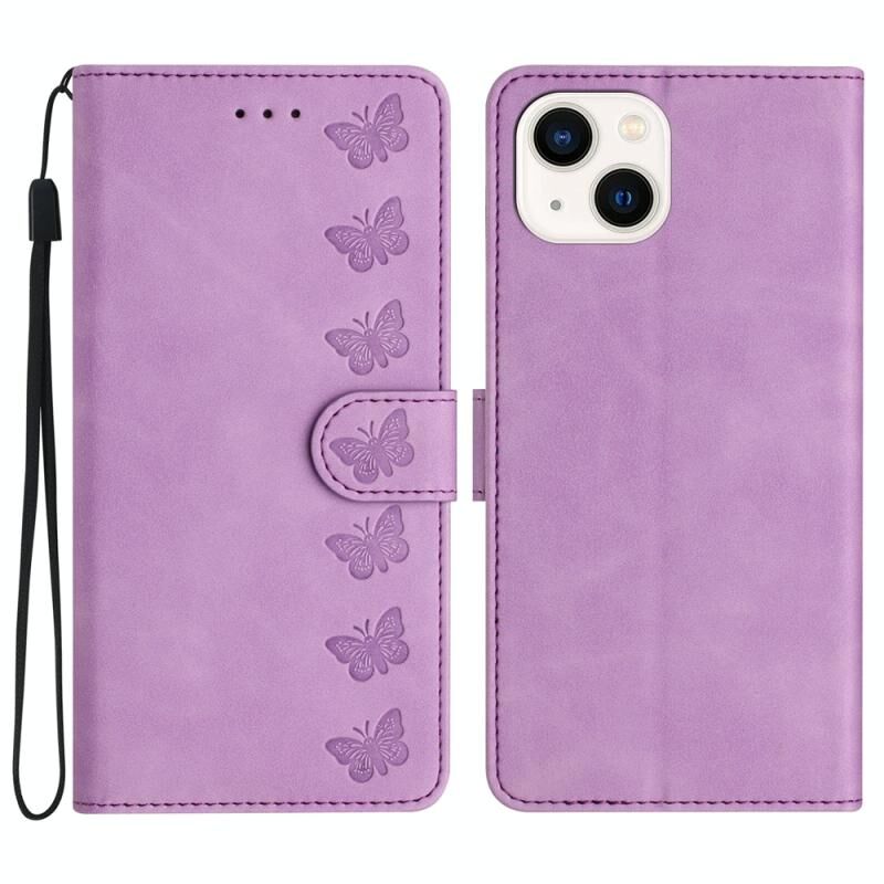 Θήκη Δερμάτινη με ανάγλυφα επτά πεταλούδες για iPhone 13 (Μωβ)