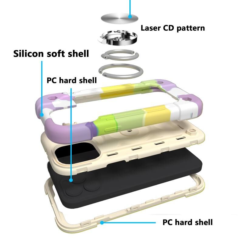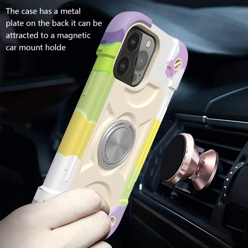 For iPhone 13 Shockproof Silicone + PC Protective Case with Dual-Ring Holder(Colorful Beige)