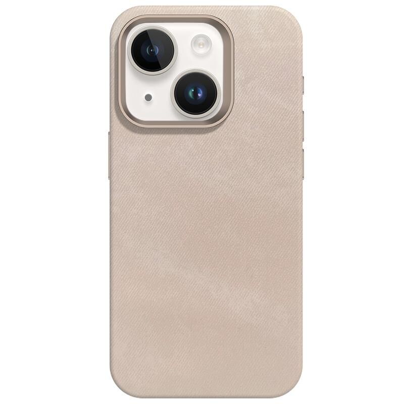 For iPhone 13 Skin Feel Denim Leather MagSafe Phone Case(Nude Pink)