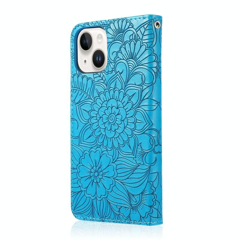 For iPhone 13 Skin Feel Embossed Sunflower Horizontal Leather Case(Blue)
