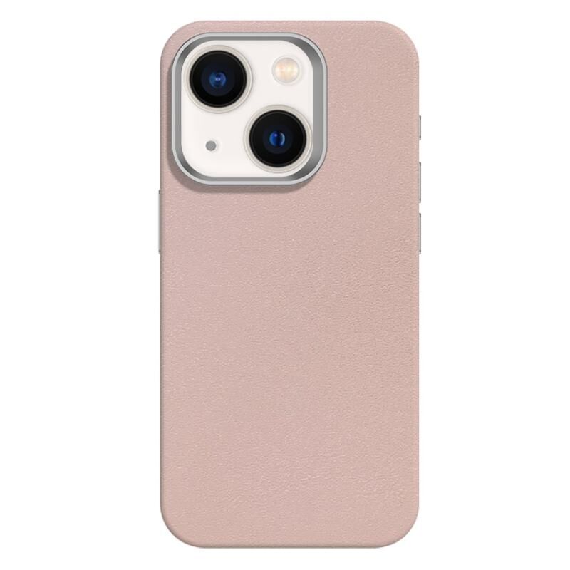 For iPhone 13 Skin Feel Fine Leather Texture Metal Lens Frame MagSafe Phone Case(Pink)