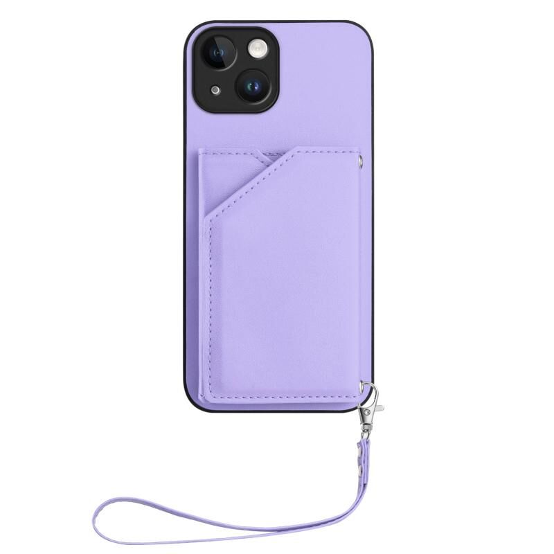 Θήκη τηλεφώνου για iPhone 13 με υφή δέρματος, τέσσερις θήκες για κάρτες και λουρί καρπού (Ροζ)