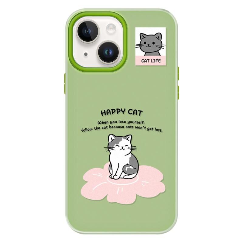For iPhone 13 Skin Feeling Jelly TPU Hybrid PC Phone Case(Happy Cat Green)