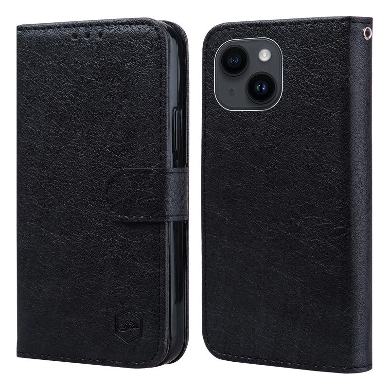 Θήκη τηλεφώνου για iPhone 13 με υφή δέρματος λαδιού και υλικό PU + TPU (Μαύρο)