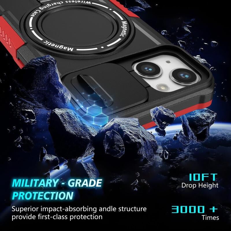 Θήκη τηλεφώνου για iPhone 13 με συρόμενο προστατευτικό κάμερας Camshield, υβριδική από TPU και PC, με υποστήριξη MagSafe (Ροζ Μωβ)