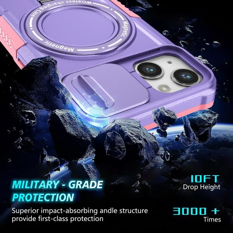 Θήκη τηλεφώνου για iPhone 13 με συρόμενο προστατευτικό κάμερας Camshield, υβριδική από TPU και PC, με υποστήριξη MagSafe (Ροζ Μωβ)
