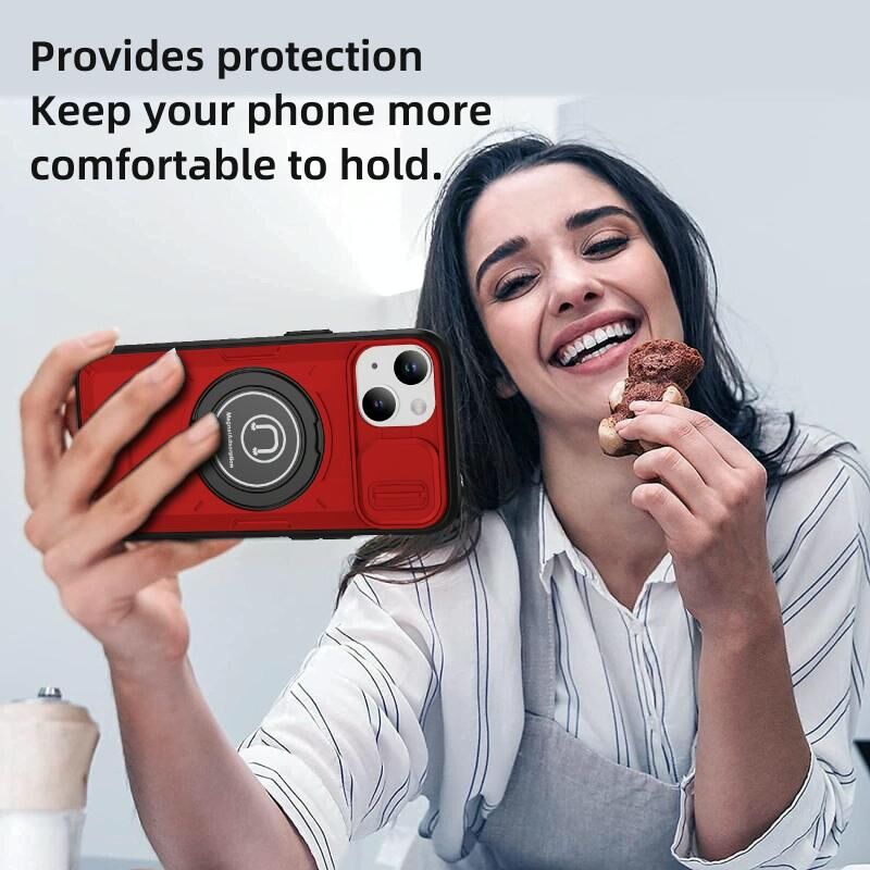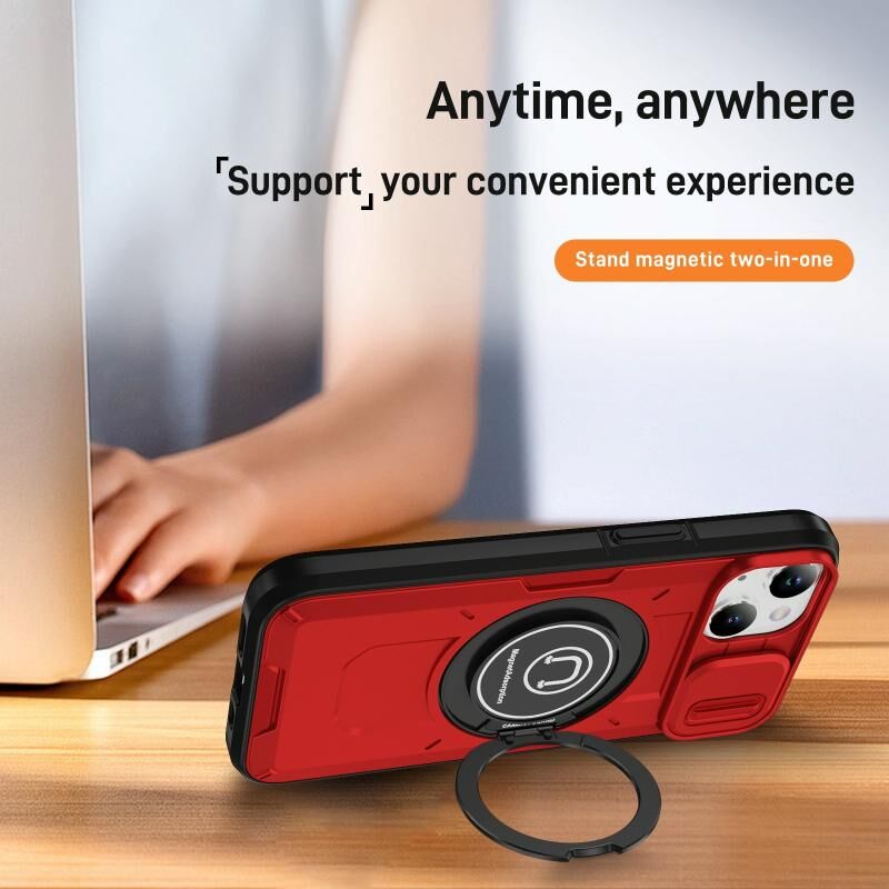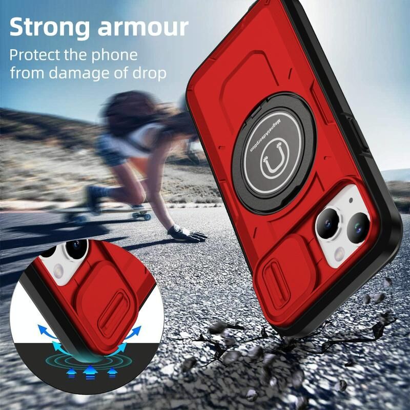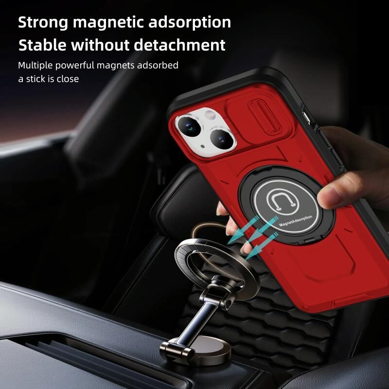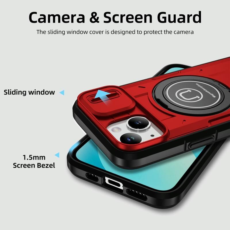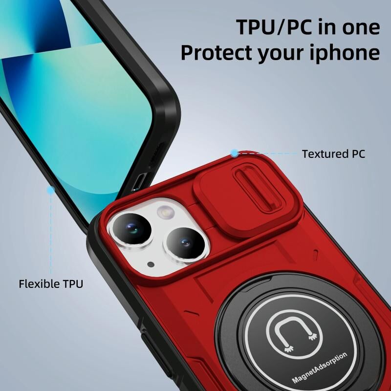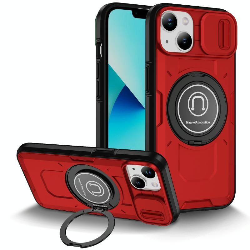 For iPhone 13 Sliding Camshield TPU Hybrid PC Magnetic Holder Phone Case(Red)