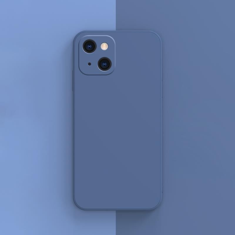Θήκη για iPhone 13, Μονόχρωμη Κυβική, Ευθεία Γωνία, Επένδυση Υγρής Σιλικόνης, Φλις (Μπλε)