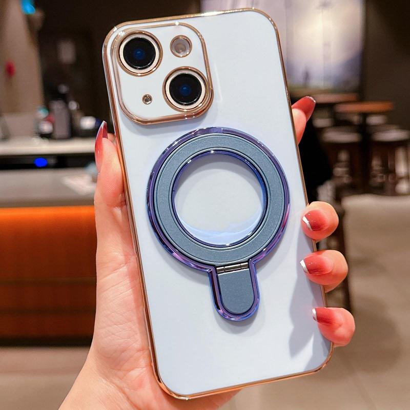 Θήκη iPhone 13 με μεταλλική βάση και επιμετάλλωση σε μονόχρωμο χρώμα (Μπλε Σιέρα)