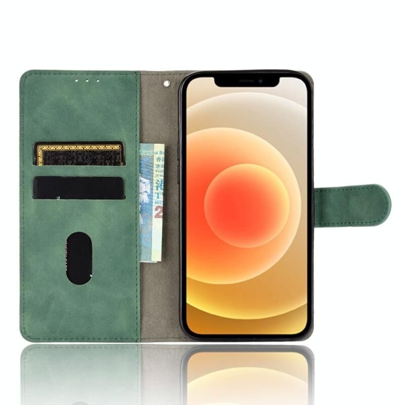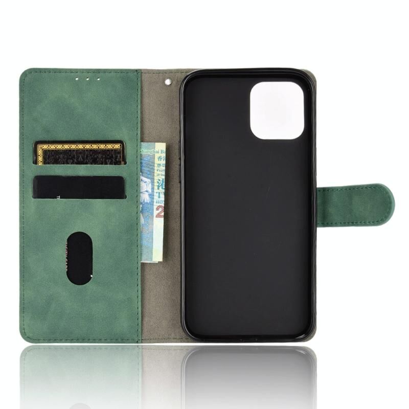 For iPhone 13 Solid Color Skin Feel Magnetic Buckle Horizontal Flip Calf Texture PU Leather Case with Holder & Card Slots & Wallet(Green)