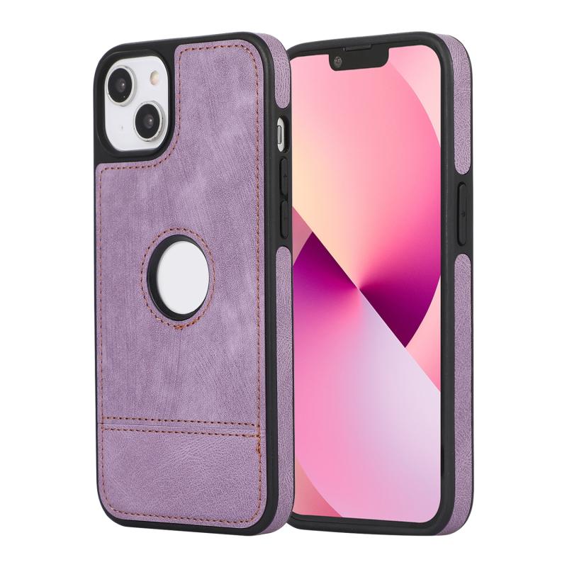 For iPhone 13 Splicing Sewing Hollow Cutout PU Phone Case(Purple)