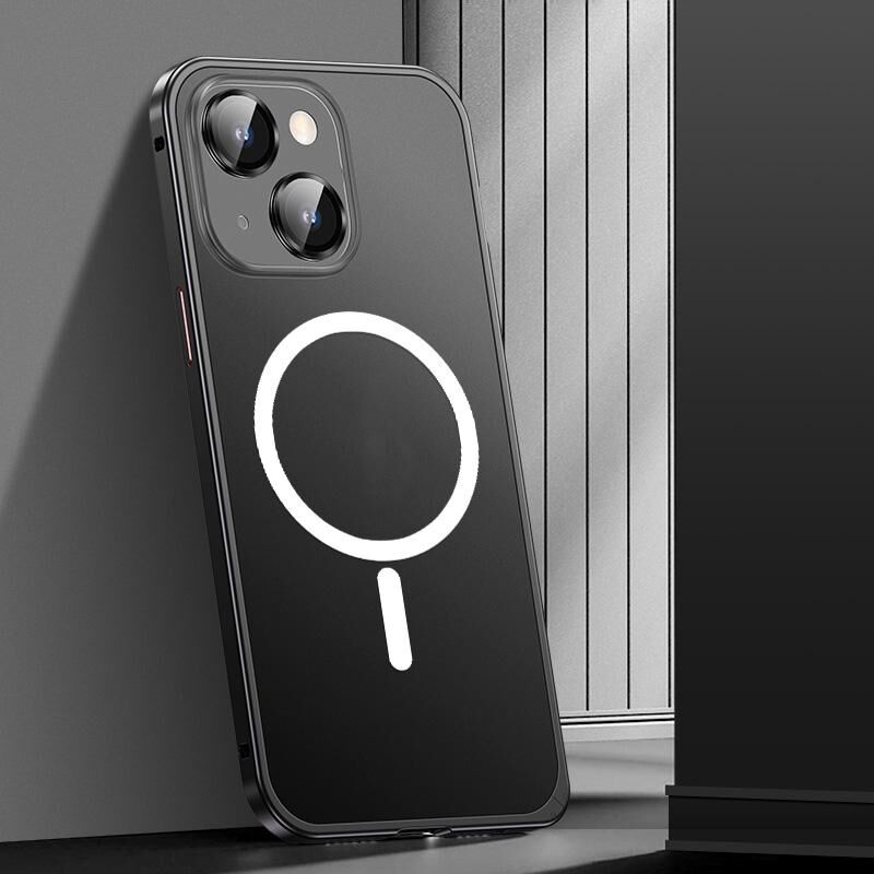 For iPhone 13 Spring Buckle Metal Frosted Magsafe Phone Case(Black)