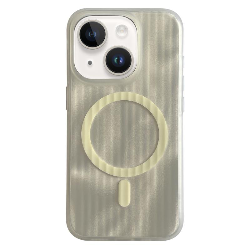 For iPhone 13 Striped Skin Feel Magnetic Magsafe Phone Case(Yellow)
