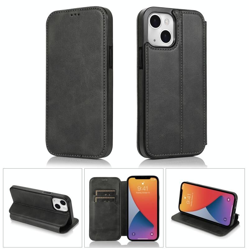 For iPhone 13 Strong Magnetic Closure PU + TPU Leather Case with Card Slots & Holder(Black)