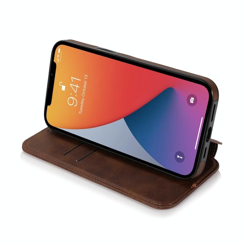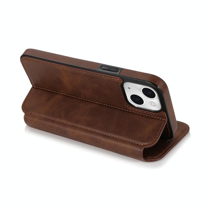 For iPhone 13 Strong Magnetic Closure PU + TPU Leather Case with Card Slots & Holder(Brown)