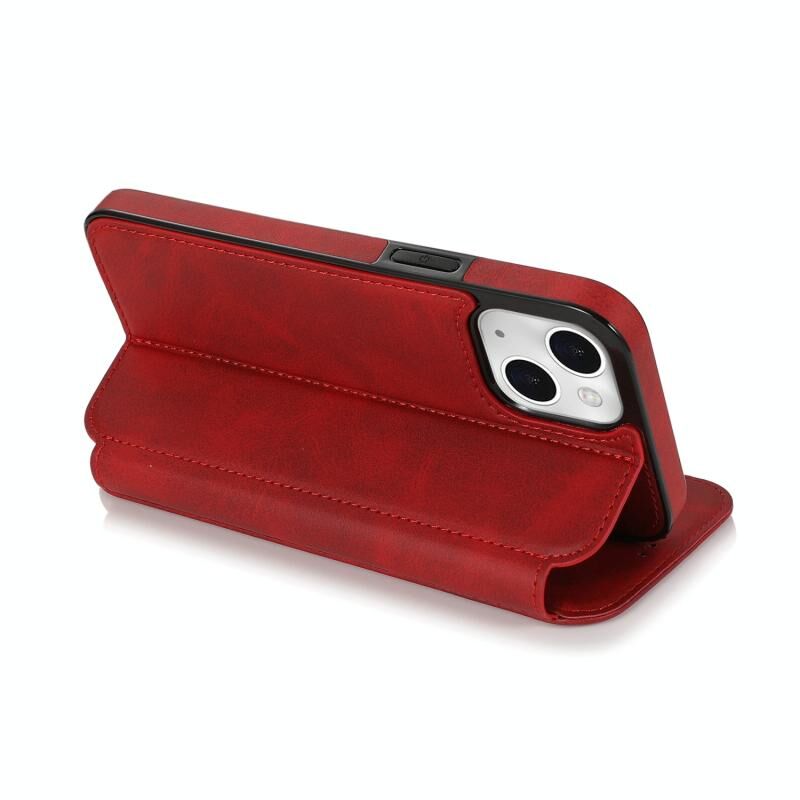 For iPhone 13 Strong Magnetic Closure PU + TPU Leather Case with Card Slots & Holder(Red)