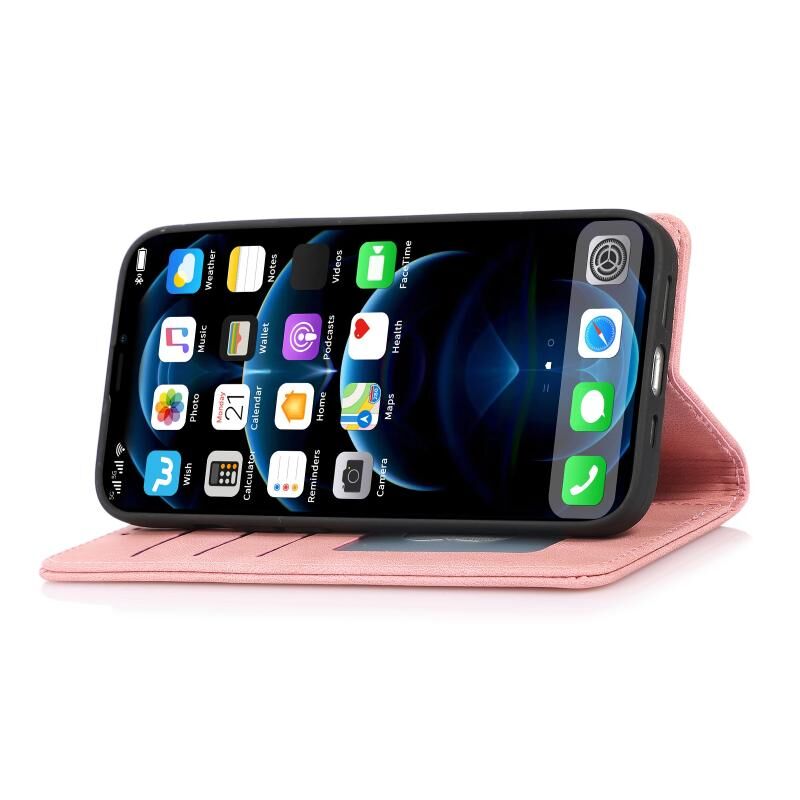 For iPhone 13 Strong Magnetic Crazy Horse Texture Horizontal Flip Leather Case with Holder & Card Slots & Wallet(Rose Gold)