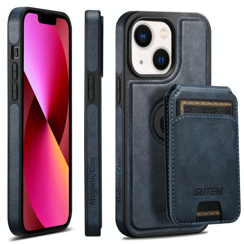 Θήκη τηλεφώνου Suteni M2 Oil Wax MagSafe για iPhone 13, οριζόντια τσέπη για κάρτες (Μαύρο) (Suteni)