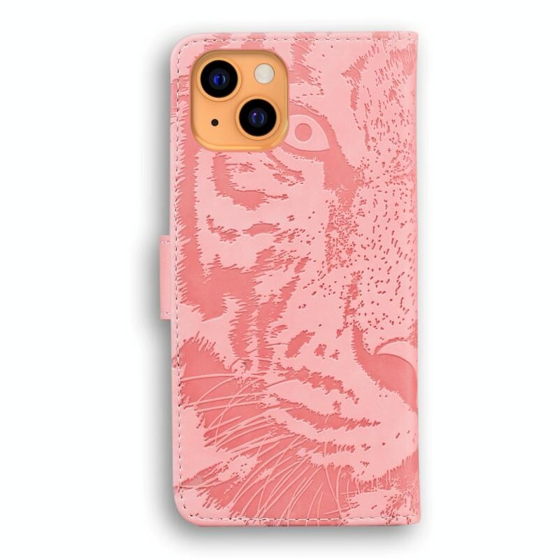 For iPhone 13 Tiger Embossing Pattern Horizontal Flip Leather Case with Holder & Card Slots & Wallet(Pink)