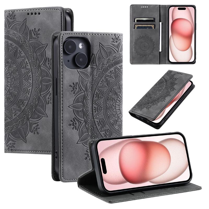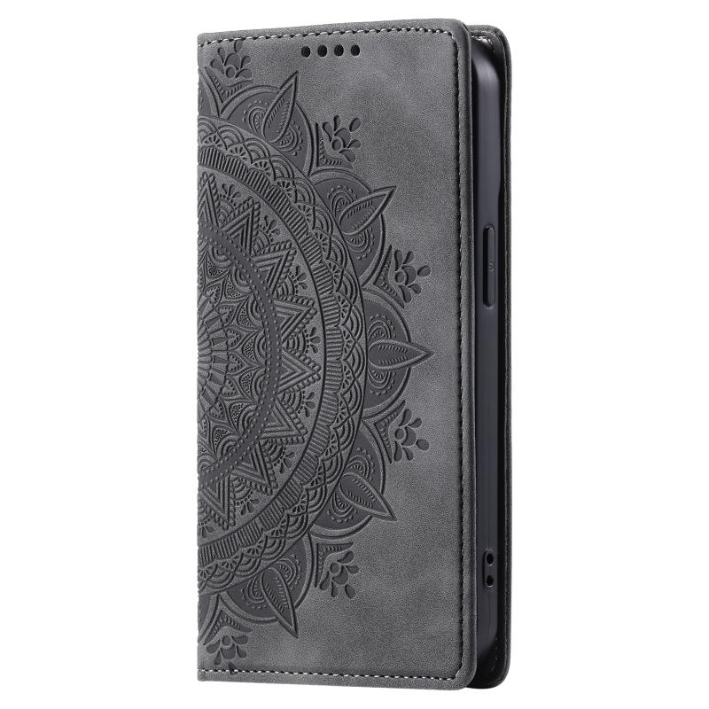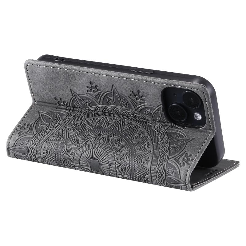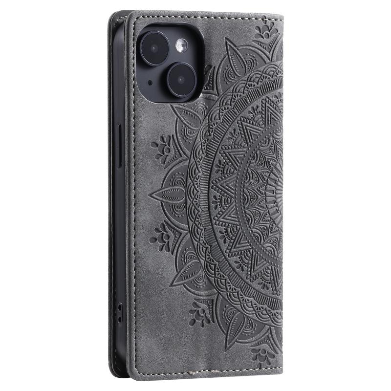Θήκη Δερμάτινη Μαγνητική με ανάγλυφο σχέδιο Totem για iPhone 13 (Γκρι)